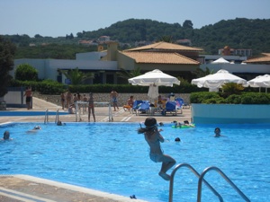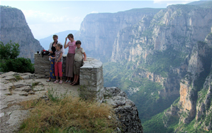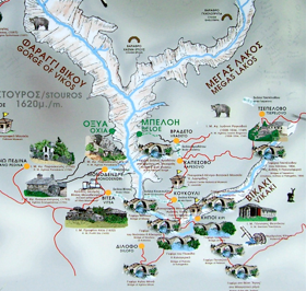Путь в каньон Викос лежал через город Янина. Всего 130 км, но каких! Совершенно «бешеный» серпантин с постоянными поворотами на 180 пролегал в густом сосновом лесу. Вдруг на перевале на склоне увидели вырубку. Вот идеальный склон, жаль снега нет – мечтательно сказали мы. А вот тот склончик – как раз для учебной горки! Подъехав поближе, поняли, что чутье нас не подвело – вдоль склона увидели подъемник. Откуда там завозят снег правда, и когда там вообще можно кататься – непонятно.