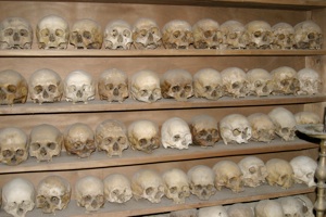 Вверху справа – мощи монахов хранятся аккуратно.